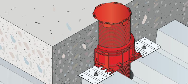 - Dispositivo pré-construído para permitir ligação de acessórios modulares, para abranger todos os requisitos no seu canteiro de obras (espessura da laje, classificação W, etc.)